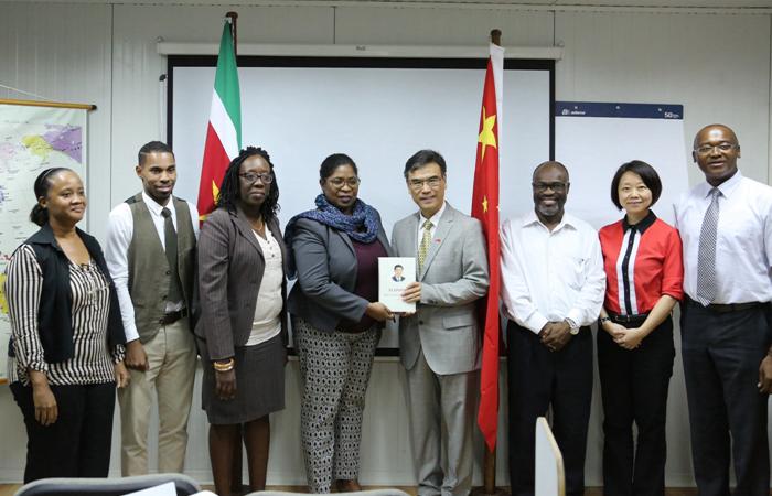 张晋雄大使向苏里南外交部赠送《习近平谈治国理政》第二卷