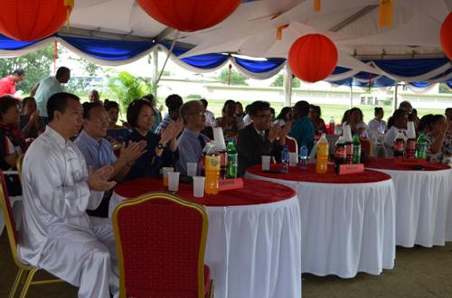 庆典活动由苏里南大学孔子学院外方院长Preetema Jong-A-Lok Pahladsing女士主持,中国驻苏里南大使张晋雄发表了热情洋溢的致辞,他首先向来宾们致以新春的问候,祝贺孔院成立一周年,祝贺孔院学生学有收获;感谢为孔院成立及建设给予支持、帮助与关心的相关部门、有关人士,感谢教师们的辛勤劳动。他提到文化交流与合作是中苏两国关系的重要内容,苏大孔院从语言入手,用文化作载体,搭建了两国人民间的友谊桥梁,今年6月孔院将选派20位学员到中国参观学习,他鼓励孔子师生能成为中苏两国友好的使者,为两国的政治、经济、文化交流做出贡献。