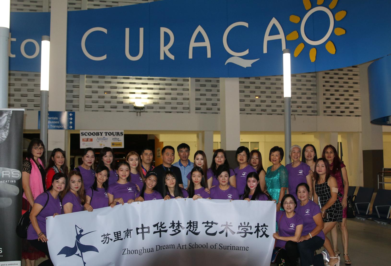 [本报讯]当地时间3月8日下午四点,受库拉索华侨会所的邀请,怀着中华会馆理事们的殷切期望,苏里南中华梦想艺术学校校长李一笑、副校长林敏率领一支由19位代表组成的艺术团乘飞机赴附近加勒比海岛荷属库拉索进行为期四天的文化艺术交流活动。