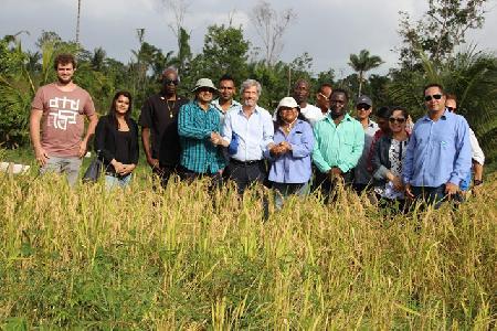 [星网讯]最近有品种的旱地稻米在内地Papatam地区成功种植,农牧渔业部长苏莱什•阿尔古和地区发展部长Dikan以及巴西驻本国大使Laudemar Aguiar于近日一起前往当地观察旱地稻米种植成果。由于使用了正确的种植技术,目前Papatam地区旱地稻米的产量已经从过去每公顷900公斤增加至3000公斤。