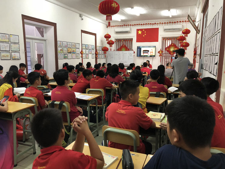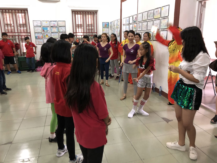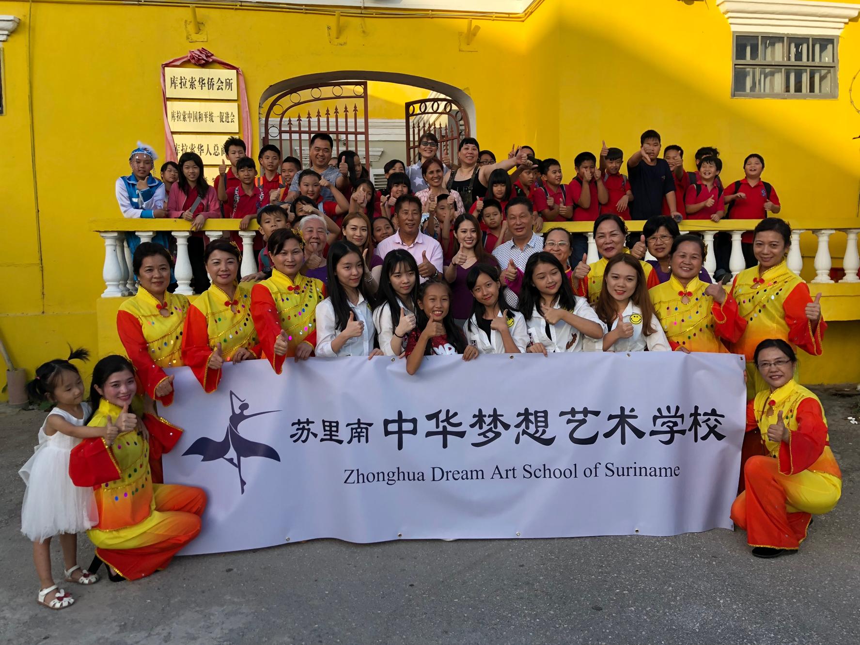 下午,访问团一行到库拉索华侨会所、华文学校进行参观学习及文化交流,受到会所理事、校董事会及学生们的热烈欢迎。访问团到后,先听取了华侨会所副主席、华文学校校长黄冠雄先生介绍会所与学校的历史及取得的成就;李一笑校长也简要介绍中华梦想艺术学校成立不到半年取得的一系列成绩。访问团成员认真观摩了李义凤老师上的一节公开课后,向孩子们表演了欢乐腰鼓舞、新疆舞、青春劲舞及经典古典舞蹈,博得了在场领导、师生、家长的阵阵掌声。库拉索华文学校师生也表演了民族舞蹈“爱我中华”和24式太极拳两个节目。表演完毕,应学校师生、家长要求,中华梦想艺术学校的老师向孩子们分别讲解了新疆舞、现代街舞的动作要领并现场示范与指导,孩子们饶有兴趣地一步步跟着老师学,专心又开心。时间过得很快,原定两小时的互动,孩子们觉得还不过瘾、不尽兴,依依不舍与访问团的老师话别。马自奋老师与黄校长就汉语课程的设置、管理、招生、教学、考核等进行了交流。