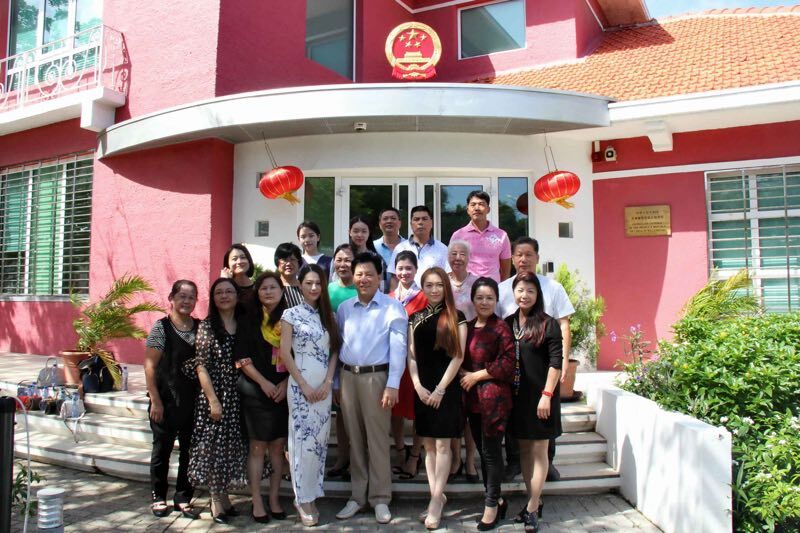 座谈后,张总领事与访问团全体人员合影留念,参加接见与座谈的还有孙力领事等以及库拉索华侨会所的部分领事。