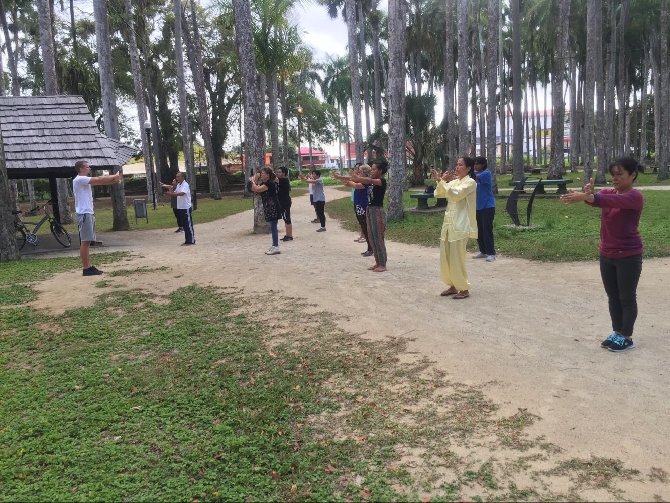 [本报讯]前段时间,来自中国河北省医疗气功医院的气功研究室主任肖远德医师,把内养功传入苏里南,并在多处地方言传身教,吸引了各族裔民众关注和学习。目前肖老师虽然离苏回国,但他所教授的内养功则在苏里南继续传扬,每个周六早上7点钟左右,由不同族裔人士组成的团队都在椰林公园与李衍林老师为首的健身队一起由Michiel先生带领练习内养功。
