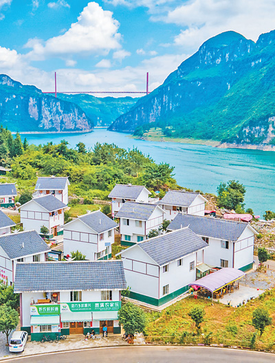 党的十八大以来,党领导人民打赢脱贫攻坚战,历史性地解决了绝对贫困问题。贵州省黔西市新仁苗族乡化屋村于2017年脱贫,2021年人均年收入提升至近2万元。图为干净整洁的化屋村麻窝寨易地扶贫搬迁集中安置点。
