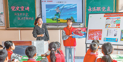 江西省宜丰县中小学校常态化开展党史学习教育进校园主题活动,同学们在丰富多彩的活动中学习党史知识,更加坚定了听党话、跟党走的决心。图为宜丰县桥西中心小学学生在思政课上分享学习党史的感悟。