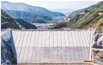 国网浙江宁海抽水蓄能电站下水库大坝。