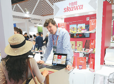 “我们带来的特色农食产品——水果巧克力球和烘干水果片此前已在国外开展线上销售。这次我们受中国伙伴邀请而来,寻求与中国跨境电商合作,并将在华拓展更多代理渠道。”主宾国匈牙利的一位食品行业参展商说。