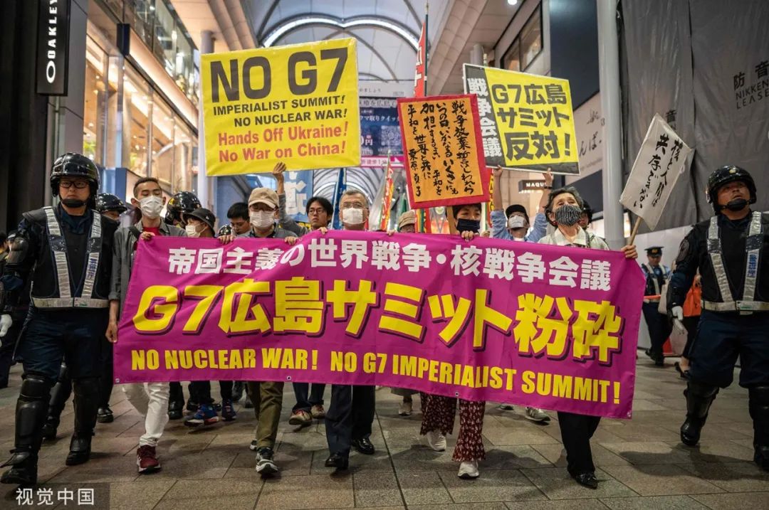 5月17日,日本广岛,活动人士参加反对G7广岛峰会的抗议活动。图源:视觉中国
