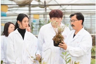 莱芜职业技术学院教授王锋祥(右)在进行铁皮石斛种植技术指导。