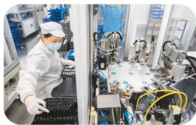 电池技术的发展推动了小微型新能源车续航里程提升。图为5月17日,工人在江西新余高新区锂电产业园赣锋电子公司生产车间的锂电池生产线上工作。