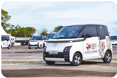 中国小微型新能源汽车受到海外市场的欢迎。近日,在印度尼西亚拉布安巴焦举行的第42届东盟峰会上,来自中国品牌五菱的50辆小型新能源车为参会代表团提供通勤服务。