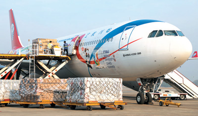 中国政府援助的新冠疫苗抵达缅甸仰光国际机场。