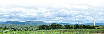 在泰国猜也蓬府,中国企业提供的风力发电机正在运行。
