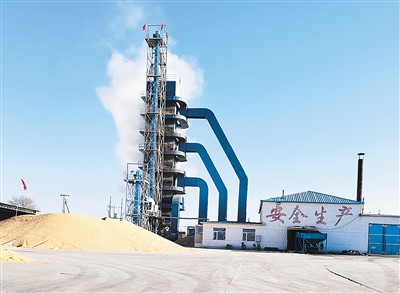 内蒙古自治区赤峰市松山区安庆镇某粮食产后服务中心正在用烘干塔烘干玉米。