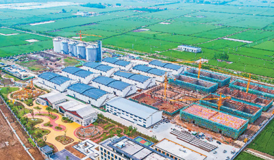 江苏省宿迁市宿豫区粮食产业园集粮食仓储物流、加工贸易、检验检测等为一体,规划建设17栋低温平房仓、10栋低温浅圆仓、粮食加工厂房和烘干中心。全部建成后,仓容量可达20万余吨。图为该粮食产业园建设工地。