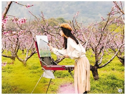 她把一个单调的涵洞变成了绝美的洞窟:青山、书院、悬崖上几枝怒放的桃花,绿水、桃林、一群白鹤翩跹其间,洞顶是一方蓝天、洞口是一股清泉、洞中是五彩的钟乳石……“穿过这个洞,前面别有洞天。”郭芳说,这是一个从梦幻走向真实的桃源体验。