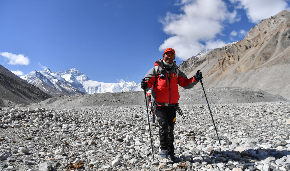 这是珠峰科考登顶队队长扎西平措(5月18日摄)。新华社记者 晋美多吉 摄