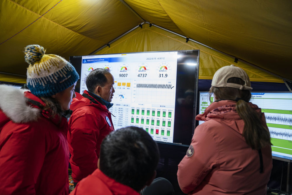 在海拔5200米的珠峰大本营科考指挥帐里,科考登顶队员每完成一项任务,科学家和工作人员都报以热烈的掌声、喝彩声。