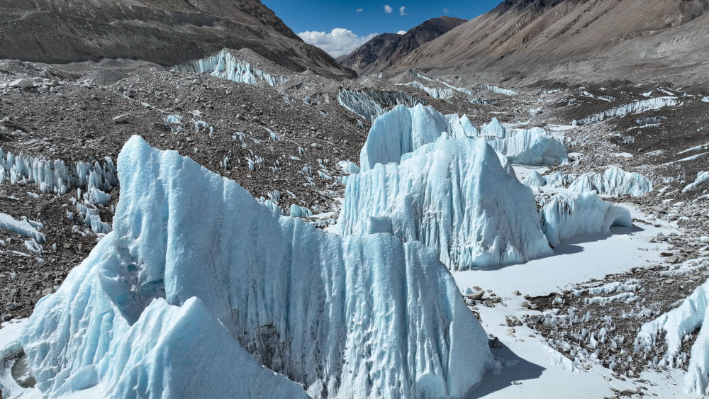 这是珠峰中绒布冰川(5月15日摄,无人机照片)。新华社记者 晋美多吉 摄
