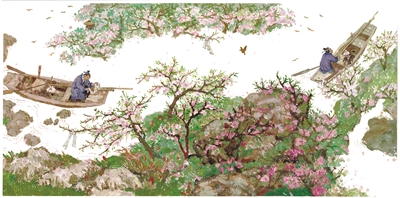 越是民族的,越是世界的,我们要有文化自信,在全球化中抓住自己民族的根。2002年,《桃花源的故事》由日本福音馆出版,翌年,入选日本小学国语教材。松居直曾对我说,中国文化有力量。《桃花源记》很早就被翻译到日本。从记事起,他就看到父亲每逢3月便在家中挂起桃花盛开的山水画,画中一条小舟逆流而上。父亲告诉他,这幅画叫《武陵桃源》。松居直中学三年级时,课本里出现了《桃花源记》,从此,“桃花源”便成为他的向往之所。