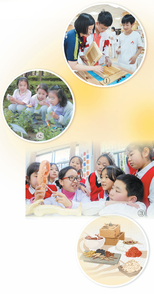 近年来,国家中医药管理局在推进中医药文化进校园中,更加突出中华优秀传统文化元素,更加注重适应中小学的普遍需求,采取“活动模板+若干物料+自主组织”的方式,带动各地中小学校开展中医药文化主题活动。