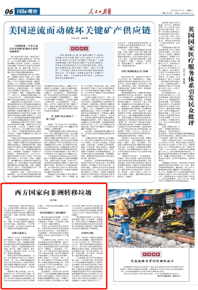 “‘垃圾围城’既关乎非洲国家治理,也是一个全球性议题。”杨宝荣表示,为尽快缓解非洲国家压力,国际社会应秉持“共同但有区别的责任”原则予以援助,其中,发达国家应承担切实责任,完善垃圾处理机制,同时给予非洲国家资金或技术支持,协助当地建立废物管理约束机制。与此同时,各方也应共同发力,促进非洲本土经济工业体系进步,提升非洲自主发展能力,让这些国家有一天能对“洋垃圾”说“不”。(张子涵)