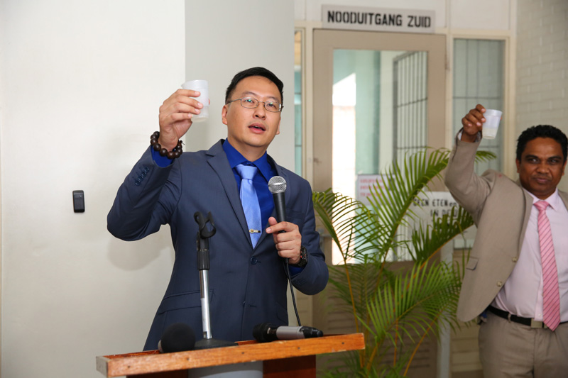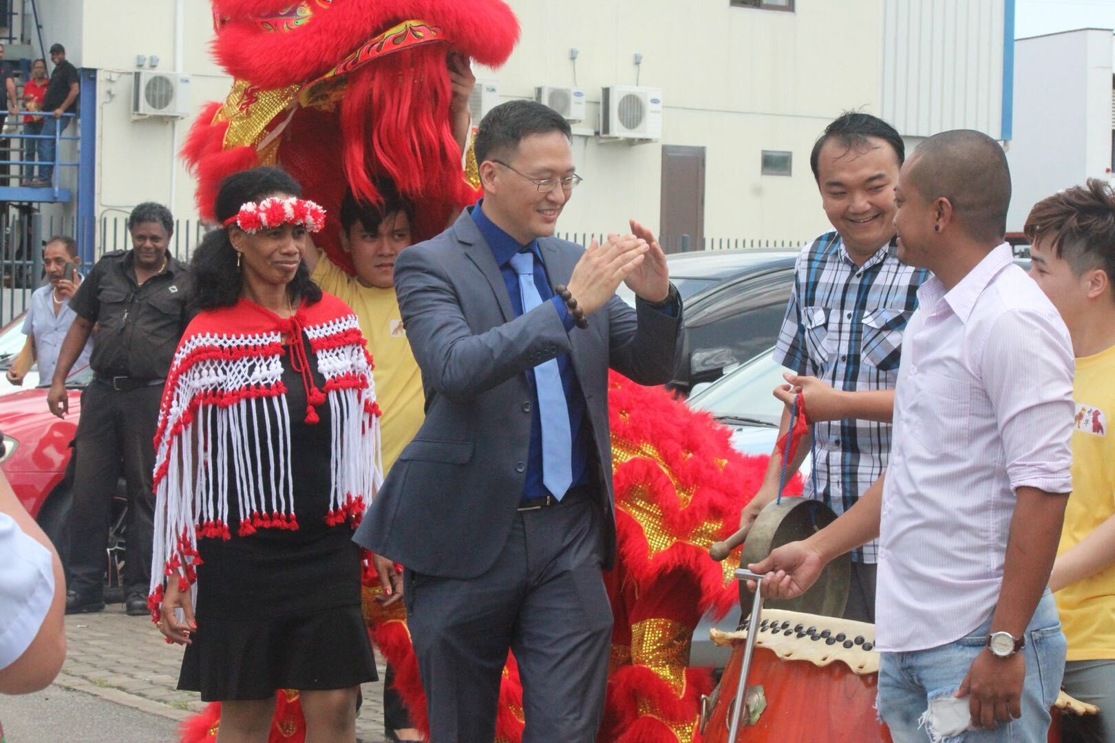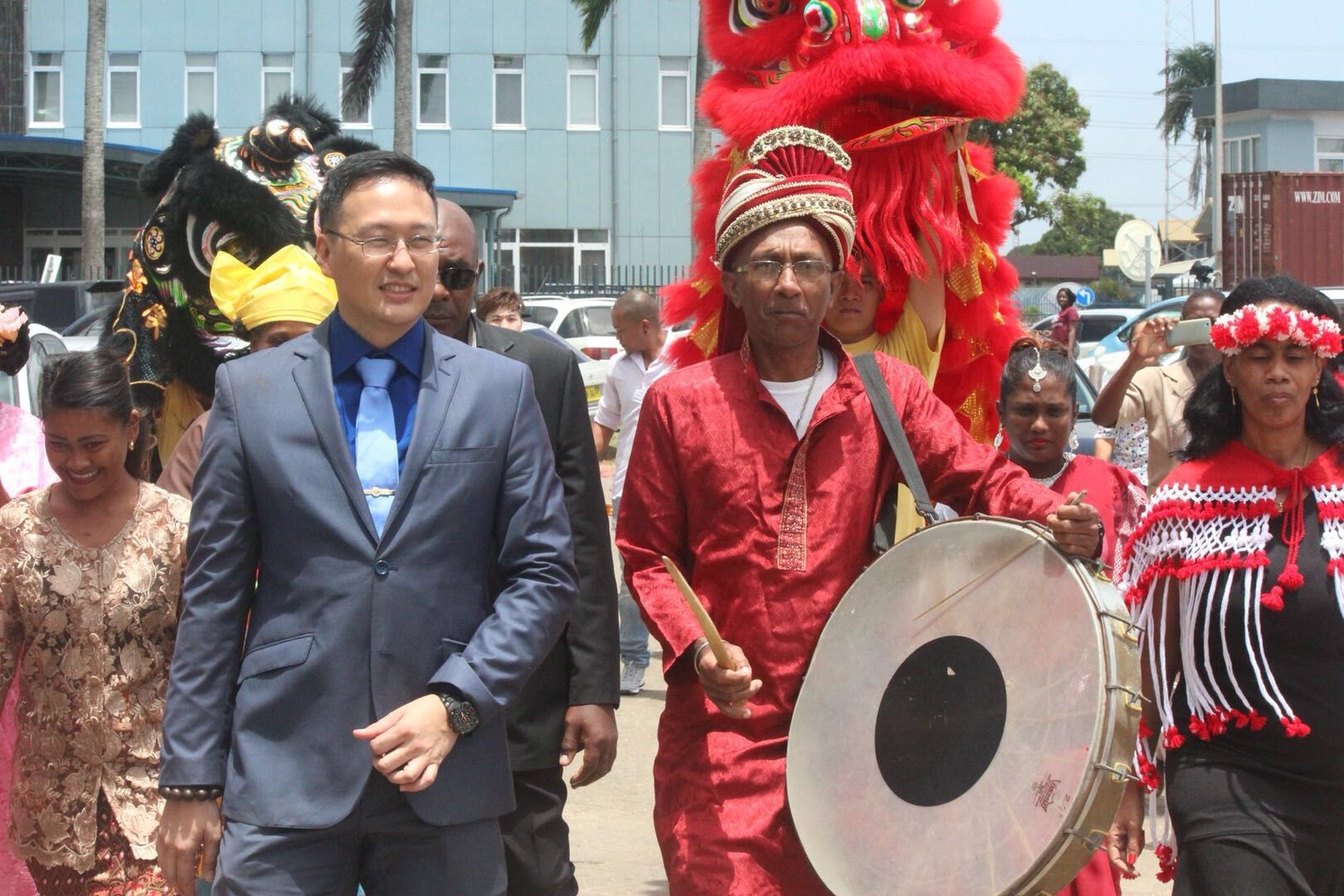 中华会馆舞狮队以及中华梦想艺术学校和妇女会联合腰鼓队在就职仪式上进行了庆贺演出。除此之外,几个不同族裔的团队亦到场庆贺,体显出各族裔民众均相信新部长的能力,支持曾锦荣就任贸工旅游部部长。