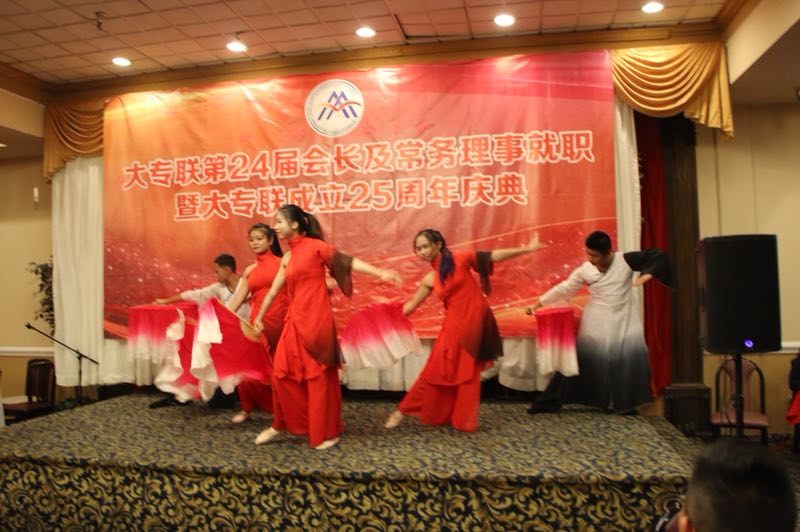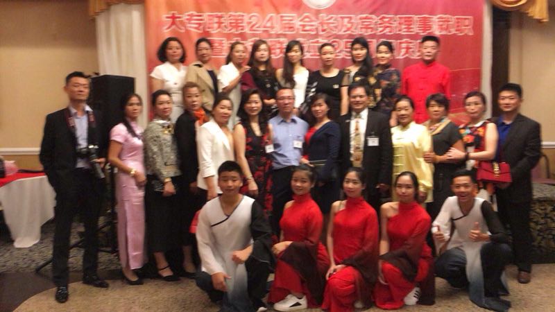 并在5月6号受邀于美国华盛顿广东华裔青年协会参加华盛顿70多所大专院校校友联合会第24届会长及常务理事就职暨成立25周年庆典。出席嘉宾有:中国驻美大使馆公使衔参赞兼总领事唐立先生、参赞兼副总领事李民先生、侨务组领事丁阳女士、易鹏远先生、马州参议员李凤迁女士、马州众议员林力图先生、马州蒙郡副执行长官齐丽丽女士、美国劳工部前财务总长莫天成先生、同乡会联合会会长孙杰先生等。苏里南华人文化艺术中心陈瑜主席也带领所有的艺术中心理事及会员参加本次活动。活动当晚庆祝晚会有各大专业院校的节目,苏里南华人艺术中心也在庆典活动中表演了精彩的舞蹈、武术表演,赢得了在场的观众与嘉宾热烈的掌声。