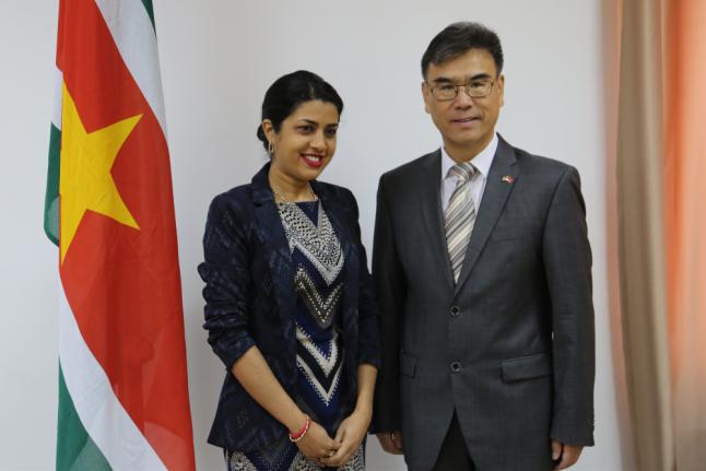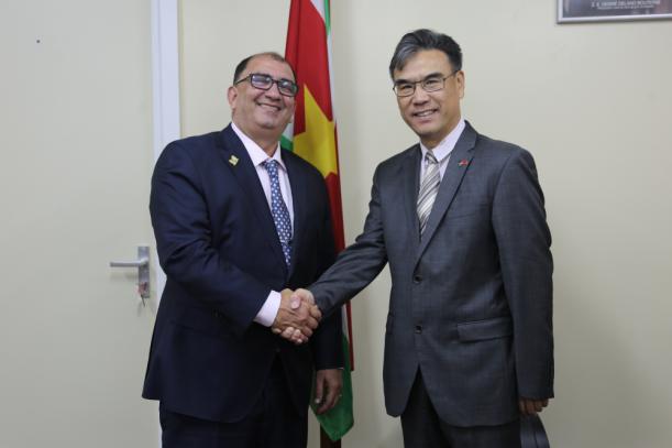 近日,驻苏里南大使张晋雄分别辞行拜会苏卫生部部长埃利亚斯,贸易、工业和旅游部部长曾锦荣,体育和青年事务部部长戈帕尔女士。