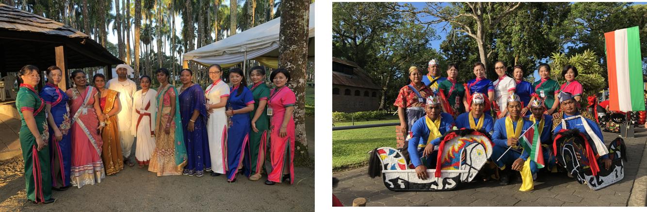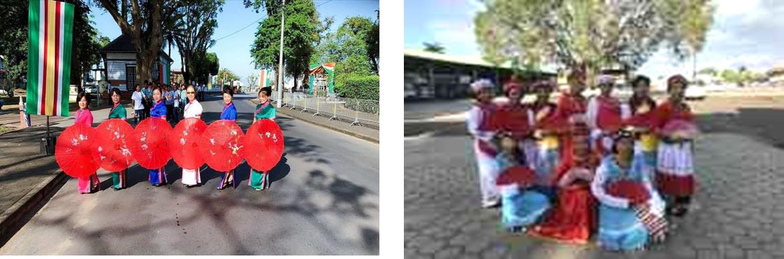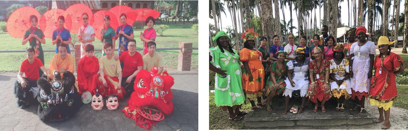 20日下午,梦想艺术学校表演队身穿各种颜色鲜艳的中国少数民族服饰在西商会参加迎接活动,和印度代表团、苏里南各团体进行文化艺术交流,让大家感受到苏里南各民族人民的风土人情,为展现苏里南文化多元化贡献一份力量。