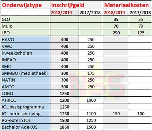 从新学年开始,本国VWO和HAVO高中的教材费则将会上调至400苏元,费用增加的幅度达到150苏元。至于NATIN和AMTO这两间职业技术学校则按照学生报读学费进行收费,这两间学校的教材费均维持在250苏元至700苏元之间。