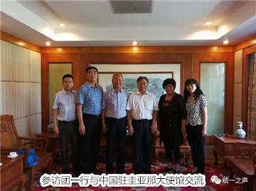 访问期间,郝一峰副秘书长一行与中国驻圭亚那大使馆进行了工作座谈,与崔建春大使就海外统促会深入开展反“独”促统工作进行了深入交流。