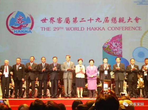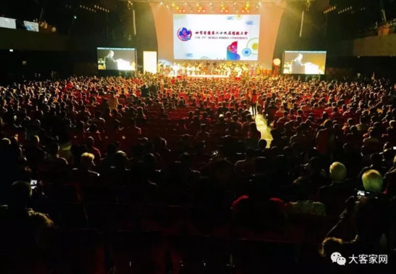 以“世客齐心 扬帆同行”为主题的世界客属第29届恳亲大会(下称:世客会)2017年10月13日在香港九龙湾国际展贸中心隆重开幕。来自美国、加拿大、英国、法国、荷兰、澳洲、新西兰、日本、韩国、印尼、新加坡、马来西亚、泰国、墨西哥、南非、毛里求斯、文莱、柬埔寨、越南、塞舌尔、缅甸、苏里南以及中国内地、港澳台等24个国家和地区3000多位客家乡亲欢聚香江,共话乡情!世客会以其影响力之大,覆盖面之广,被世人称之为客家人活动中的“奥运会”。
