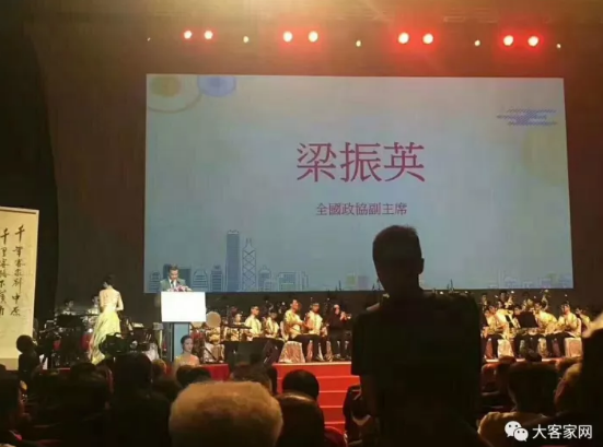梁振英在开幕式上发表“一带一路”主旨演讲。他指出,“一带一路”倡议是“共商共建共享”的国际合作,合作目的是互惠互利,得到国际社会广泛响应。客属乡亲遍布世界各地,热爱家乡,关心当地社会,长期以来精诚团结,客属企业家经营有道有成,有广泛的国际人脉关系,在“一带一路”国际合作倡议下可以推动互联互通的工作。
