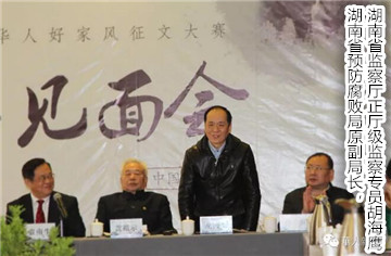 湖南省军区原副政委黄祖示少将,湖南省预防腐败局原副局长、监察厅正厅级监察专员胡海鹰,湖南省教育厅副巡视员杨里平,三门峡市政协副主席李琳,三门峡市政协副秘书长宋惠学等领导莅临此次见面会,并对此次征文大赛予以高度肯定。杨里平说,优秀传统文化的继承与发扬,更应该从当代青少年们抓起,此次大赛特设中小学组,是一个非常正确和意义深远的举措。