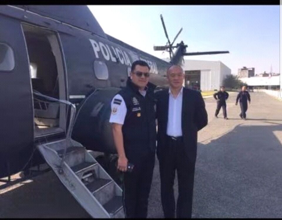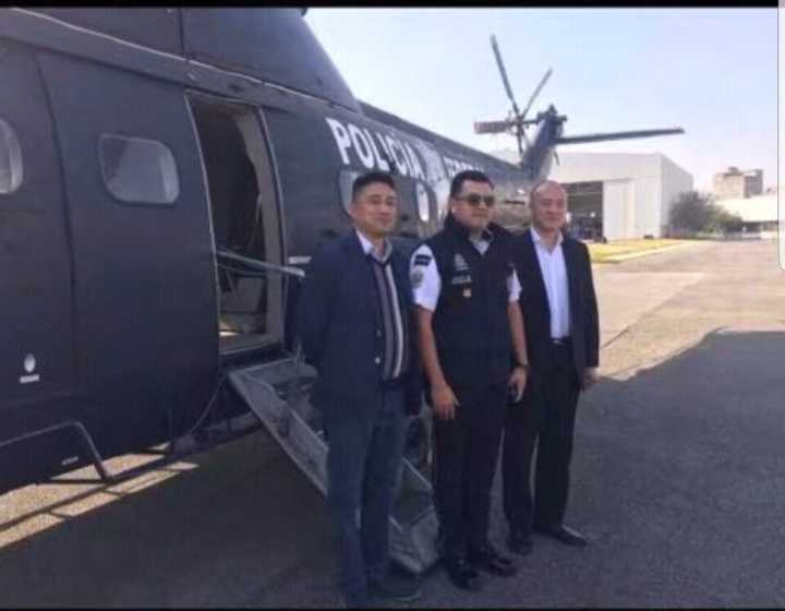 会后最高长官带领部下和冯委员长和高付委员长参观联邦警察设施和十架直升飞机,介绍其中三架大型飞分别从美国,英国,法国进口。十架直升机可在全墨执行任务。