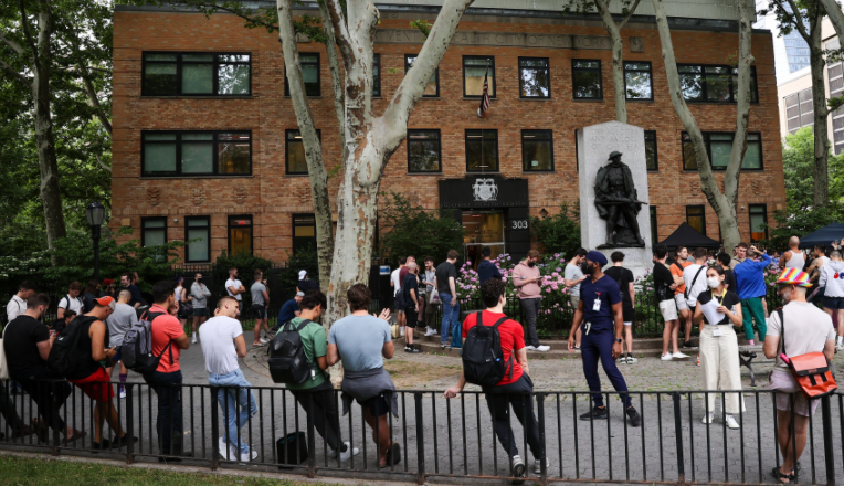 美国纽约民众排队等待接种猴痘疫苗。(资料图)