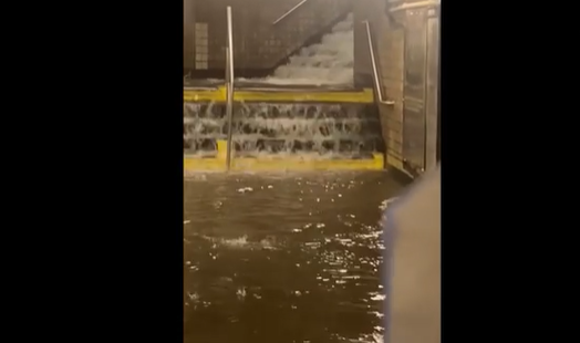 纽约市地铁站内遭大量积水涌入(视频截图)