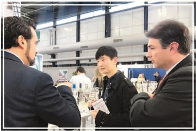 叶森(中)在校期间与法国当地酒商进行贸易洽谈。