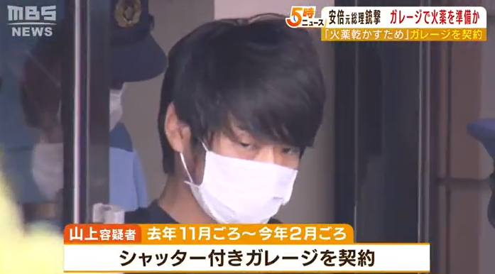 MBS新闻报道称,山上曾于2021年11月至2022年2月期间,租用了一间带有百叶窗的车库。警方搜查人员透露,山上表示租车库是为了干燥火药。警方认为,山上精心策划了袭击安倍事件。