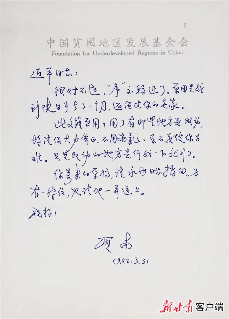 这是1992年老革命家项南给习近平写的一封亲笔信。他在信中提到的“序”,是他为习近平《摆脱贫困》一书所作。