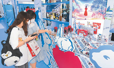 第二届中国国际消费品博览会上,国货精品馆达5000平方米,有1200百多个国内品牌亮相。图为观众在消博会上挑选大白兔奶糖。 新华社记者 杨冠宇摄