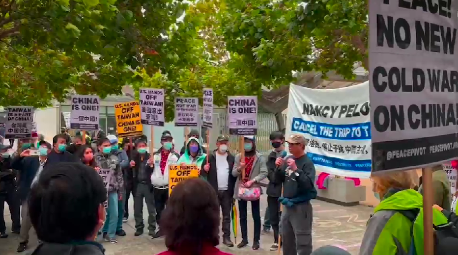 1日早间,大批抗议者聚集在旧金山联邦政府大楼外,呼吁佩洛西取消窜访台湾的计划。许多人手持“一个中国”“美国人滚出台湾”“台湾是中国的领土”等中英文标语牌,并高呼“我们要和平”。抗议民众认为,此次出访,是作为加州第12国会选区代表的佩洛西未能优先考虑美国民众利益的又一案例。