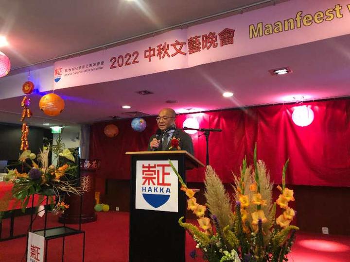 荷比卢崇正客家总会张挺宏总会长致辞时说,中秋节是有人情味,诗情画意的团圆节日,祝各位中秋节快乐。他说客家总会期待从现在开始能够定期举办节日活动,加强会员之间和本会与其他友好社团的往来,共同为荷兰侨社谋更多福利,加快融入主流社会的步伐。他也重点推荐明年3月即将参加省议员选举的荷兰东部海尔德兰Gelderland省的第二代华裔刘成,他认为这是一个非常好的开始,若刘成能成功当上议员,将给年青人一个模范,引起更多第二代对政治这方面的兴趣,在政府圈子为华人发出声音,争取合法的权益。