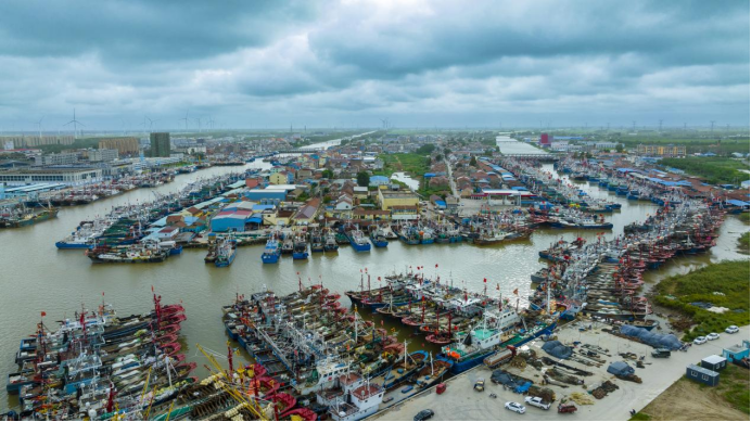 ▲上图:9月14日,为躲避台风“梅花”,江苏省盐城市射阳县黄沙港内,近千艘渔船紧急进港停泊。(孙华金摄/人民图片)