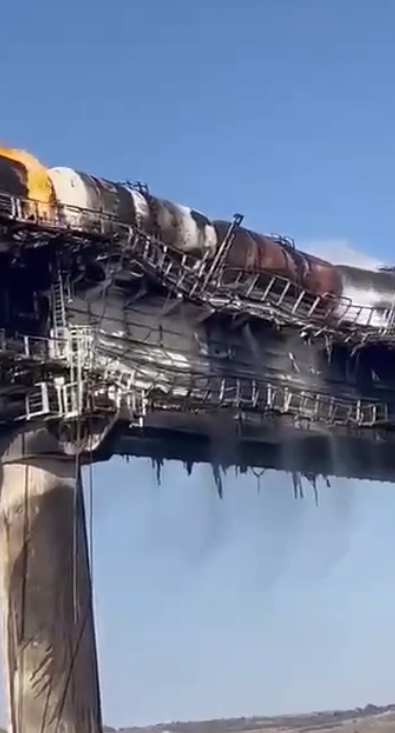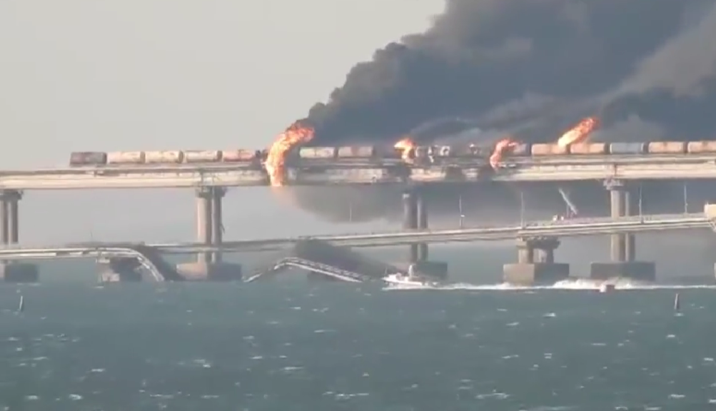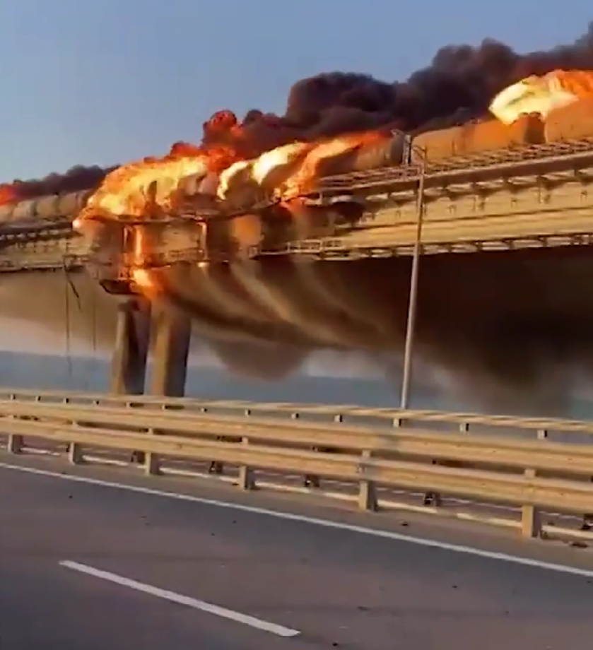 克里米亚大桥起火现场(俄罗斯红星电视台)