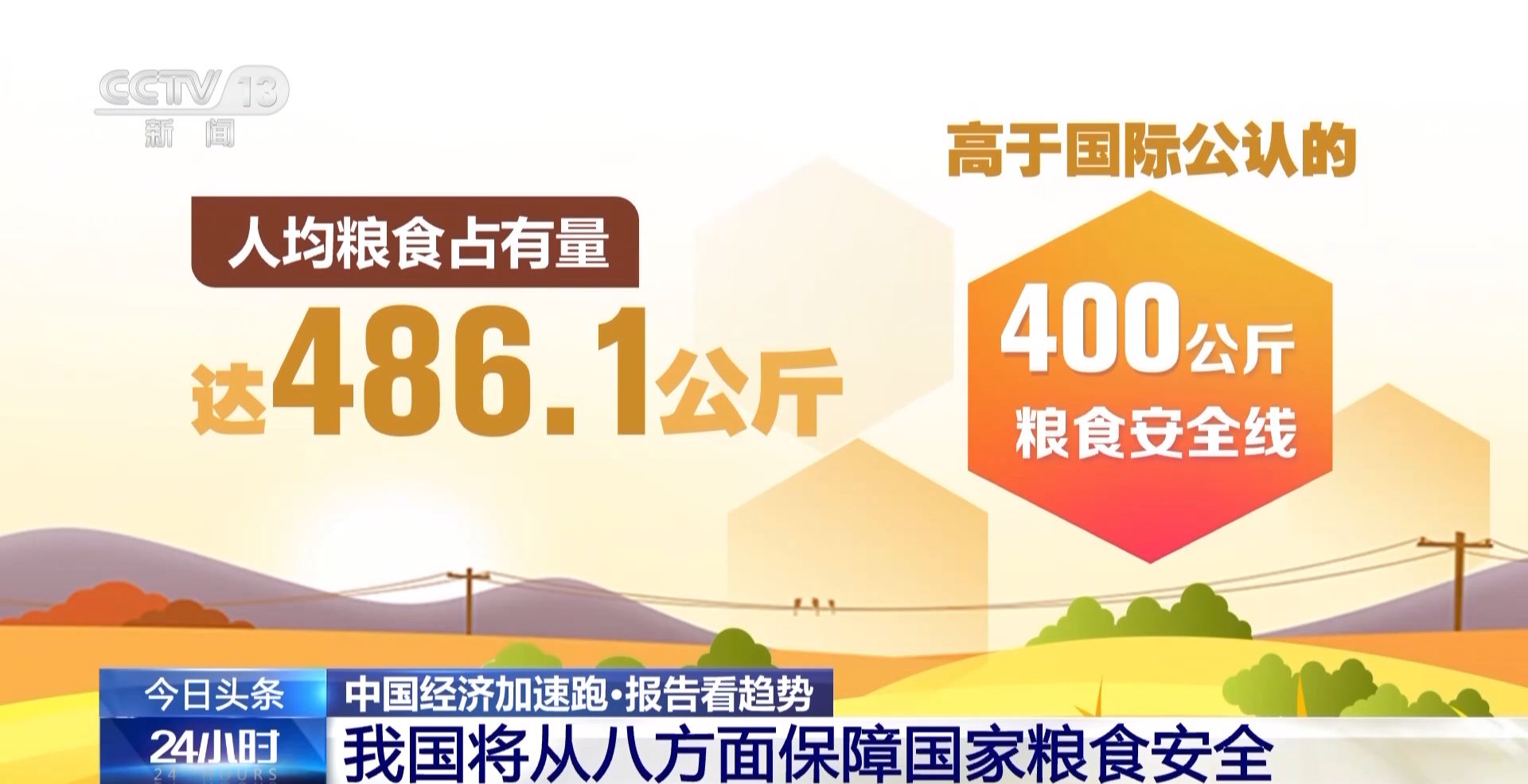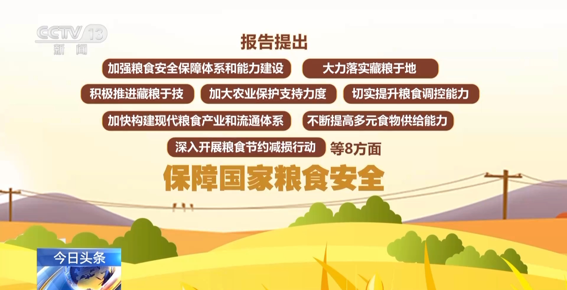 报告提出,将从加强粮食安全保障体系和能力建设、大力落实藏粮于地、积极推进藏粮于技、加大农业保护支持力度、切实提升粮食调控能力、加快构建现代粮食产业和流通体系、不断提高多元食物供给能力、深入开展粮食节约减损行动等8方面,保障国家粮食安全。
