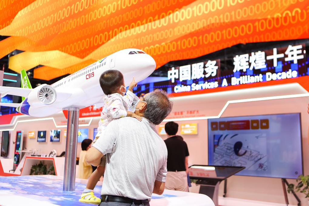 2022年9月5日,观众在服贸会国家会议中心参观中国服务贸易成就展。(新华社记者郝昭摄)