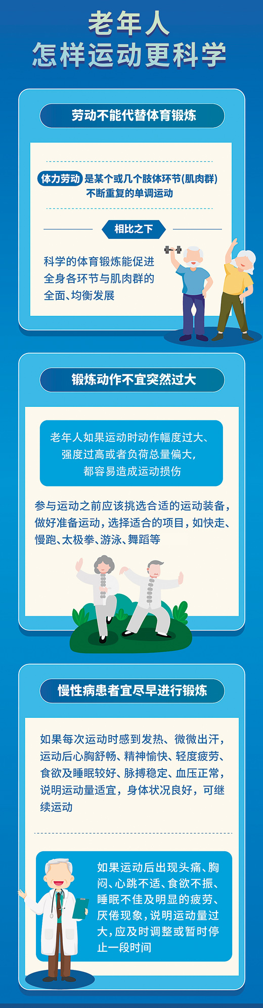 “秋季来临,心脑血管疾病也进入高发季。”江山说,心脑血管疾病患者如果经常在寒冷的环境中运动,容易导致血管痉挛,引起心脑血管病发生,因此这类患者运动时一定要注意保暖。与此同时,心脑血管患者以老年人为主,多数合并有糖尿病、肺部疾病等基础病,因此建议在专业医生的指导下,选择合适的运动方式,一般推荐游泳、快走等方式。