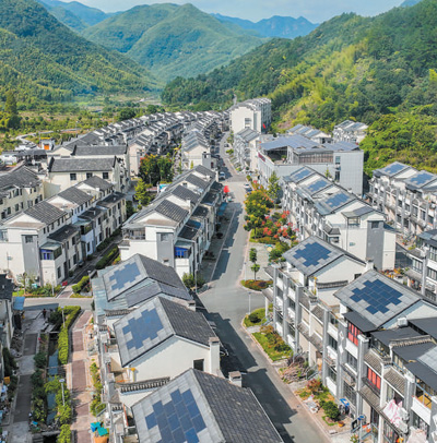 在浙江省宁波市四明山东麓的李岙村,300多户居民住房屋顶上铺设的光伏电板,在阳光下熠熠生辉。该光伏村项目由国网宁波供电公司联合当地政府、光伏企业合作建设,村民每年有一定的免费用电额度,每年售电还可为村集体增收。